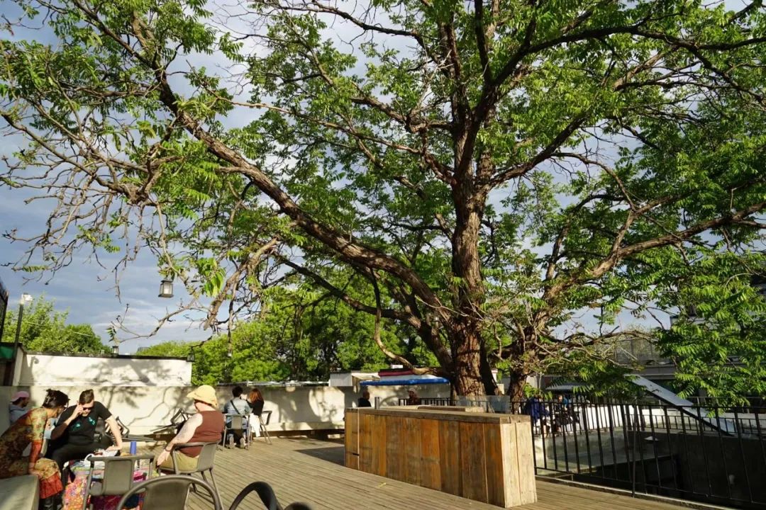 The indoor exhibition hall is full of works of art, the courtyard under the trees is accompanied by flowers and wind, and the second-floor terrace has wonderful scenery.