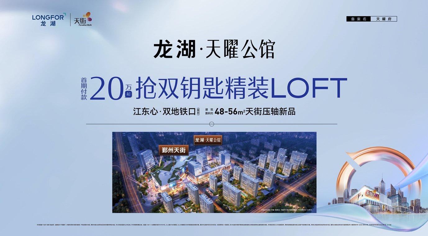 此外,备受瞩目的天街之上压轴新品——天曜公馆,更是带着史无前“利”的首开红利惊喜来袭,首期付款约20万起,即可争藏双钥匙精装loft。