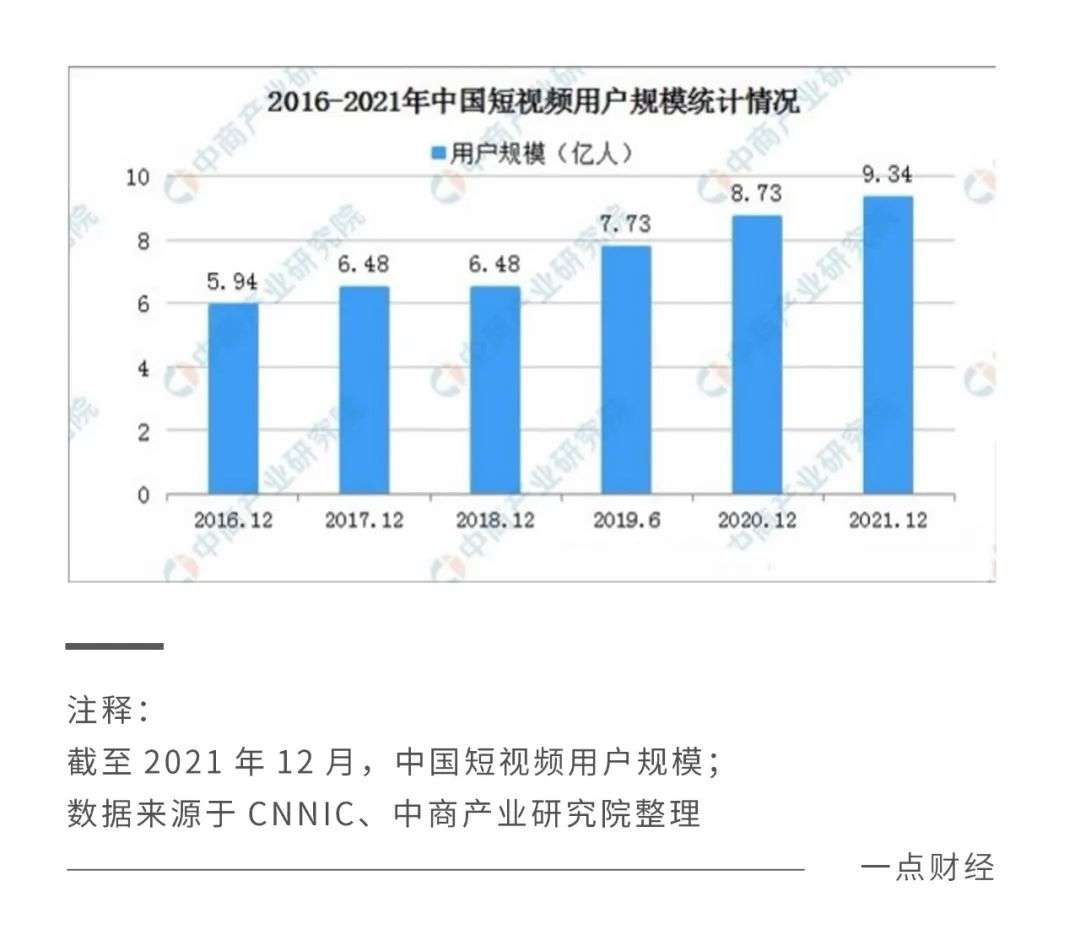 而国内第49次《中国互联网络发展状况统计报告》显示,截至2021年12月,我国网民规模达10.32亿,短视频用户规模达9.34亿。同时用户使用短视频的时长也在不断增加,据中国网络视听节目服务协会数据显示,截止2021年3月中国短视频人均单日使用时长达125分钟,较2020年12月底增加了5分钟,短视频用户粘性持续提升。