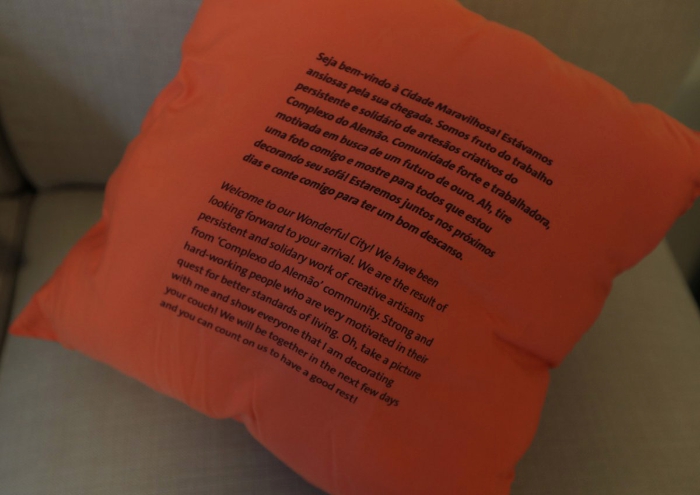 每个房间里,都有一个写满欢迎致辞的枕头。