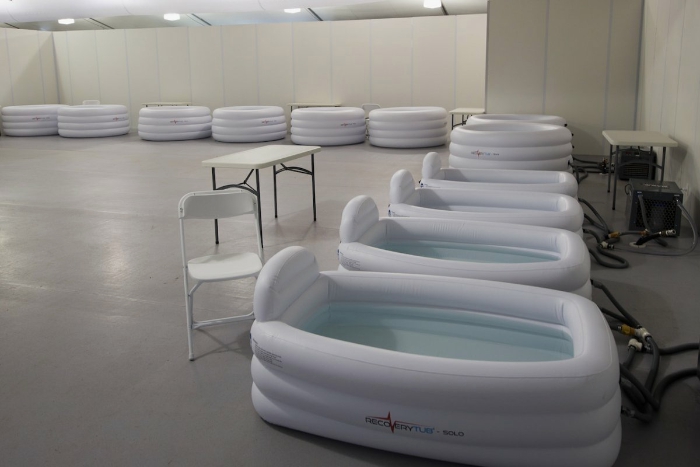 运动员们还可以在健身房里“冰浴”。