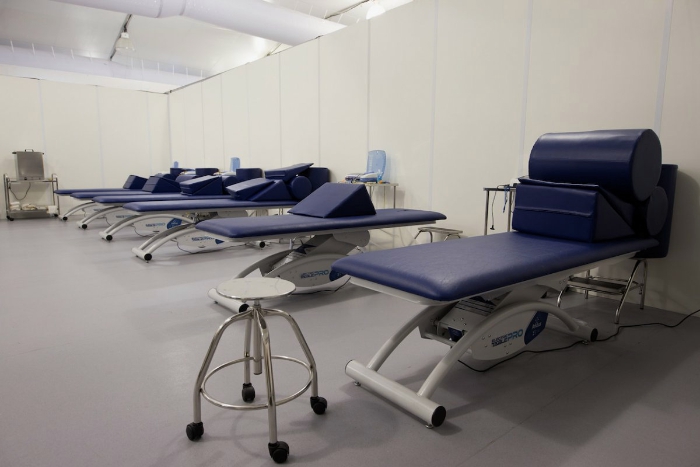 这是按摩治疗室,为运动员提供普通的身体按摩等服务。