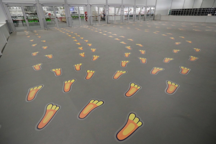 一排排的脚印,指引运动员们前往奥运村餐厅。