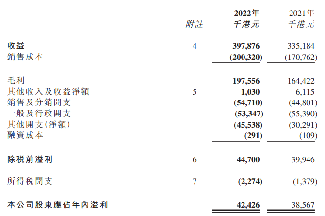 由于授权行业发展多年,代理商与IP版权方的合作较为稳固,羚邦的毛利率变化不大,2022财年为49.7%,上年是49.1%,销售成本主要为根据与版权方约定的版税率所付版税。