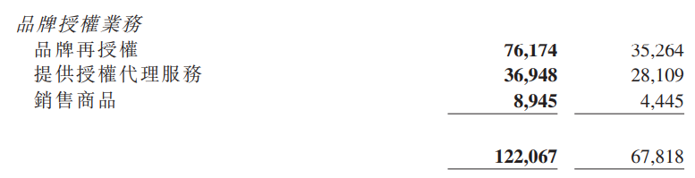 2022财年,羚邦的授权收入又分为品牌再授权7617.4万港元、授权代理服务3694.8万港元和销售商品894.5万港元。