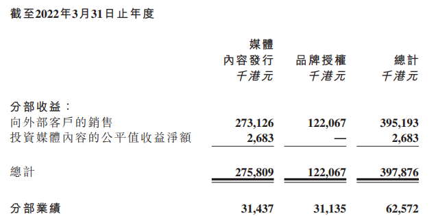 羚邦的利润构成,内容发行分部业绩3143.7万港元,IP授权分部业绩3113.5万港元。