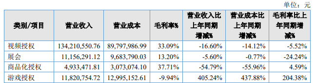 IP授权的收入是内容发行的一半,利润数字却相当,可能是由于版权成本主要计在了内容发行部分。