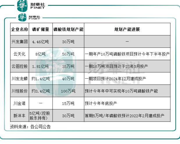 根据财华社统计,目前云天化、兴发集团和云图控股(002539.SZ)等企业拥有自身的磷矿资源,这些企业将磷矿资源视为提升自身在新能源产业领域竞争力的重要基础。得益于磷矿资源和一体化产能优势的支持,这些企业得以大步跨界布局磷酸铁业务。如芭田股份(002170.SZ)的“磷矿—磷酸—磷酸铁”完整产业链已经初具规模,其磷矿在建产能达到90万吨/年,有望为其新能源产业注入活力。