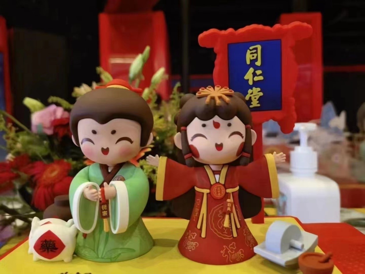 令参观者感到神奇和点赞的不仅是非遗技艺,还有同仁堂股份全新产品IP形象,活泼可爱的两个卡通人物让展区赢得了众多人气。
