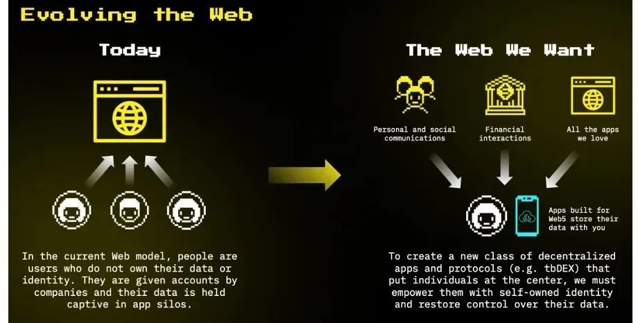 在Web2中,渐进式Web应用程序通过缓存将用户相关信息集中起来,再整体转交给集中式服务器。但Web5将利用去中心化Web节点取代这些集中式服务器,保证用户数据不致落入第三方之手。