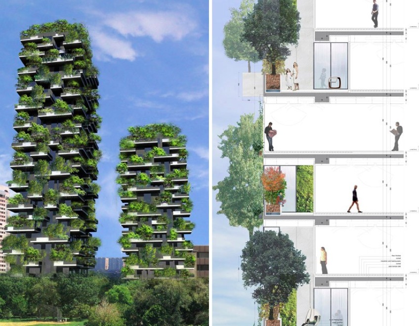 这一点,我们看看国外的顶尖建筑设计是怎么做的。在国外,高层建筑中人与自然亲近的案例很多。在米兰,知名立体绿化建筑师博埃里的解决方案是,把树种在建筑的外立面上,它可以让人在50层的建筑上不仅能看到树,还能看到鸟在树上筑巢,这是世界建筑史上的一种创新。