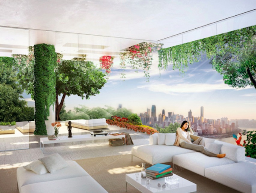 在重庆天空森林城市项目将这种亲近自然的理念更加升华了, 未来,这里将有30000㎡的立体绿化。每栋建筑首层均规划有7.5米的架空层,也将构成5000㎡的架空绿伞。每隔10层又规划有空中多功能架空层,形成10000㎡的空中花园。另外,每隔2层还会有小花园,多重的景观构成了立体的城市绿洲。除此之外,未来这里还将有亚洲第二,190米高的天际泳池、重庆首个248米高的楼顶私属停机坪、天际架空健身房、绿色书吧、生态咖啡厅等。