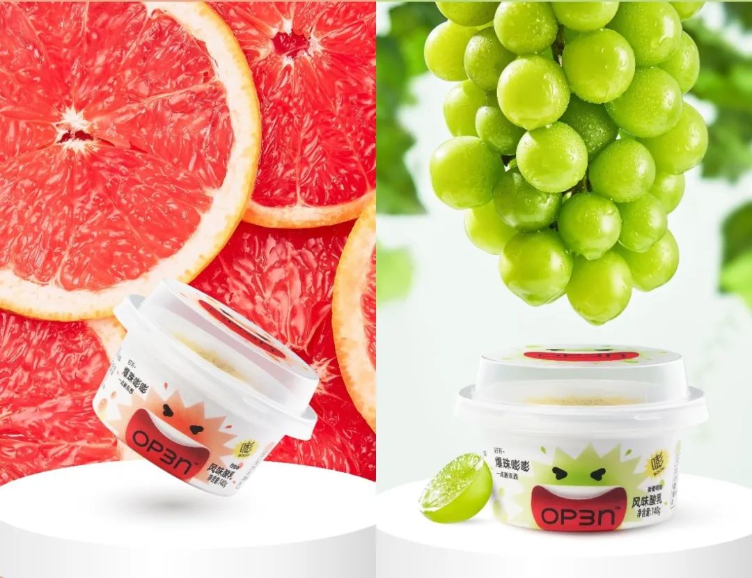 比如简爱母公司朴诚乳业与富友联合的合资子公司推出的OP3N,就是瞄准年轻客群推出的更加零食化的品牌,与传统酸奶形成了错位竞争。其首款“酸奶慕斯”,将酸奶与甜点融合创新,更像慕斯的口感。近日推出的“爆珠嘭嘭”则加入了薄皮爆珠来丰富饮用体验。
