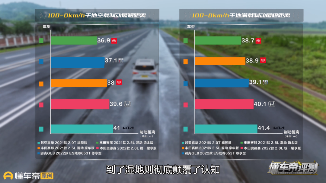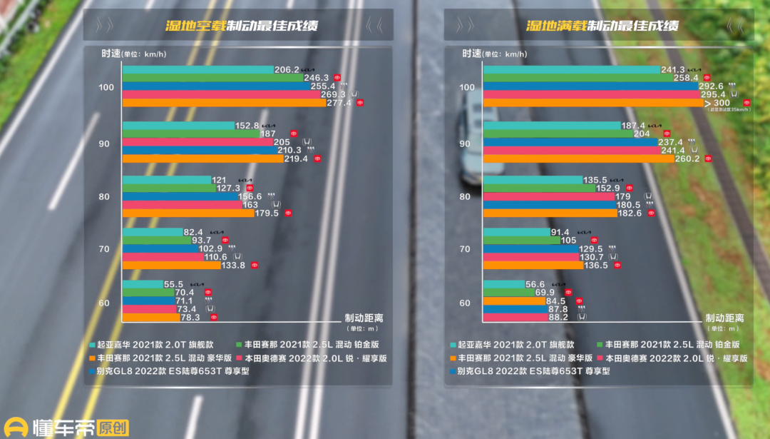 干湿两种路面由于摩擦系数不同,后者本身就会成倍地放大车辆的制动距离,如果单看赛那在干湿路面的表现差异或许还可以理解。