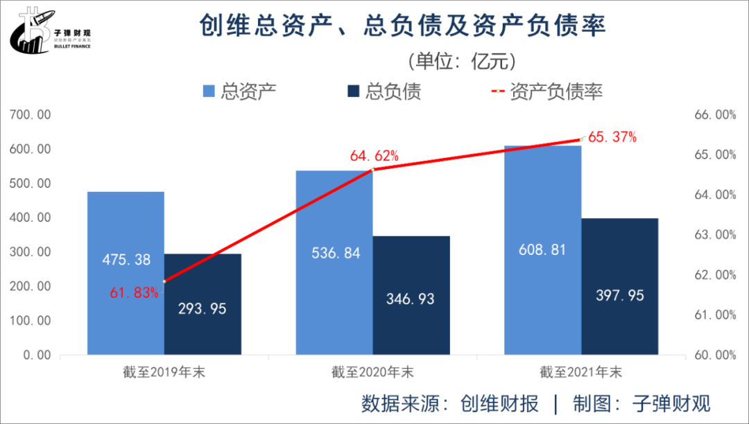 而且,创维的资产负债率呈逐年增长的势头,依次为61.83%、64.62%和65.37%。