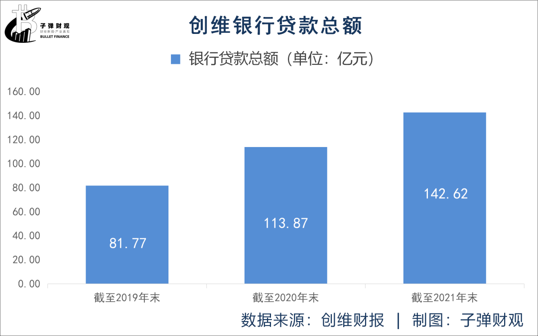 除此之外,创维的银行贷款总额还在逐年上升。根据创维往期财报,截至2019年末,该公司的银行贷款总额仅为81.77亿元,而截至2021年末,这一数值已飙升至142.62亿元。