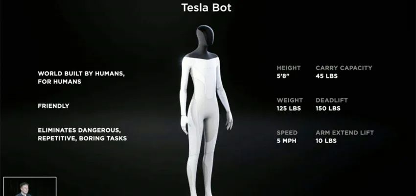 据马斯克介绍,该机器人大约1.73米,体重约56.7千克,可抱起约20.4千克的货物最快行走速度可约达8KM/时。