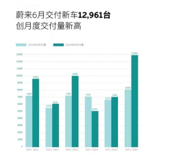 蔚来汽车6月交付12961辆,同比增长60.3%,创月度交付新高。