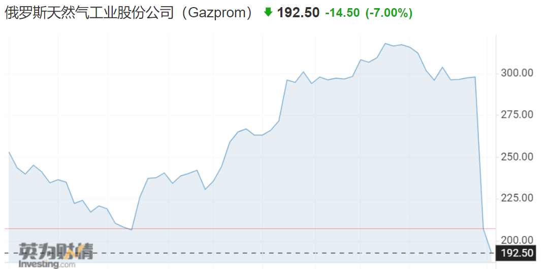 截至莫斯科交易所7月1日收盘,俄气股价跌7%,报每股192.5卢布(约合23.41元人民币)。这一价格较6月29日的收盘价297.65卢布下降了约35%。