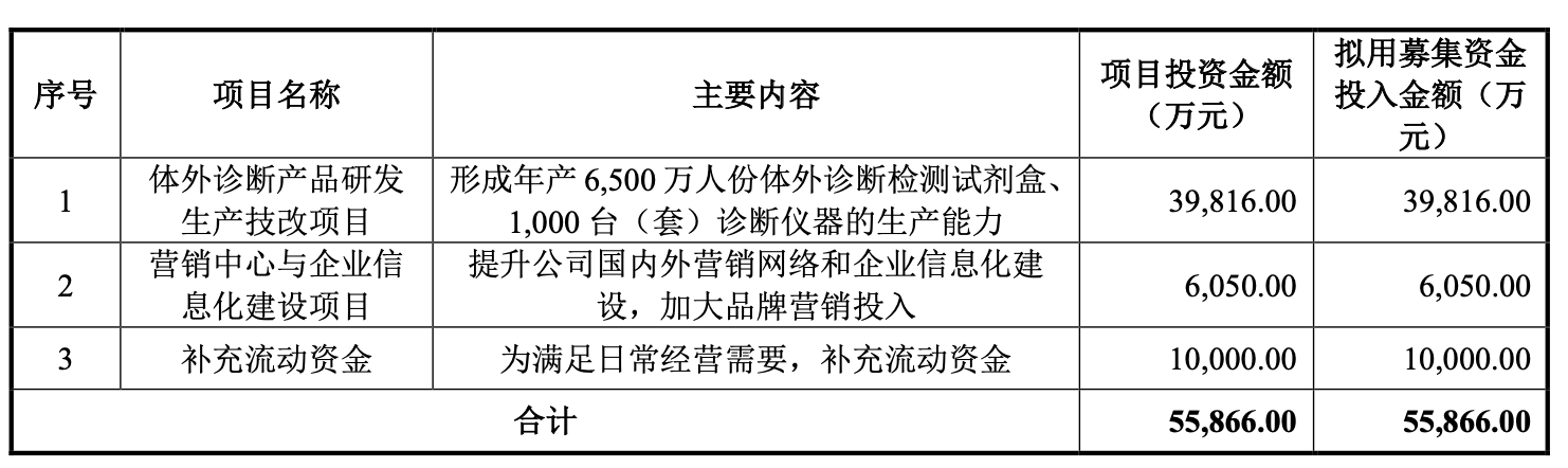 在体外诊断产品研发生产技改项目中,资金用于新厂房及生产线的建设、购置研发生产设施设备,以及现有生产场地的改造,提高生产效率。