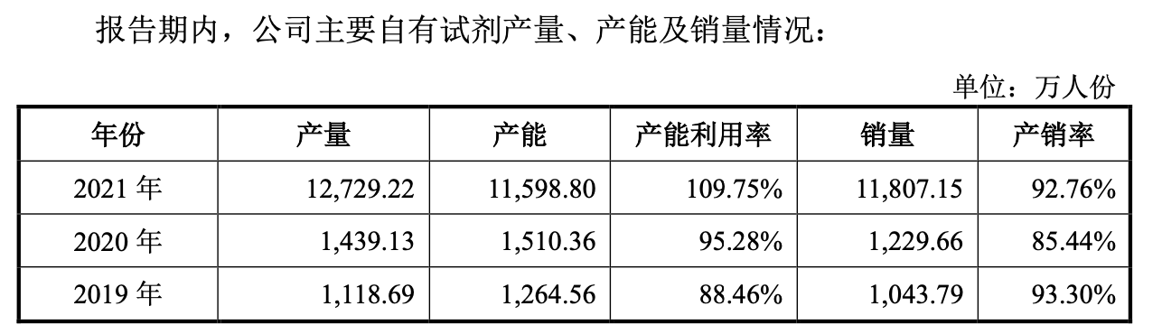 但中翰生物的各个产品产销量却披露不详,现有试剂产能有多少是用于新冠检测的?界面新闻记者留意到2021年传染类检测试剂(均为新冠病毒检测试剂)销量为1.07亿人份;同时新增的年产 6500万人份体外诊断检测试剂盒中又有多少用于新冠检测,是否能够消化?