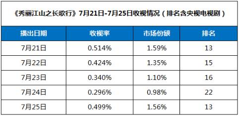 然而,关于林心如、袁弘的话题和关注度却没有有效转化成电视剧的收视率。自开播以来,《秀丽江山之长歌行》在晚间电视剧的收视排名始终没能进入前十,播出第四天时更是跌至二十名开外。与此同时,《秀丽江山之长歌行》的豆瓣评分也下滑至5.7。
