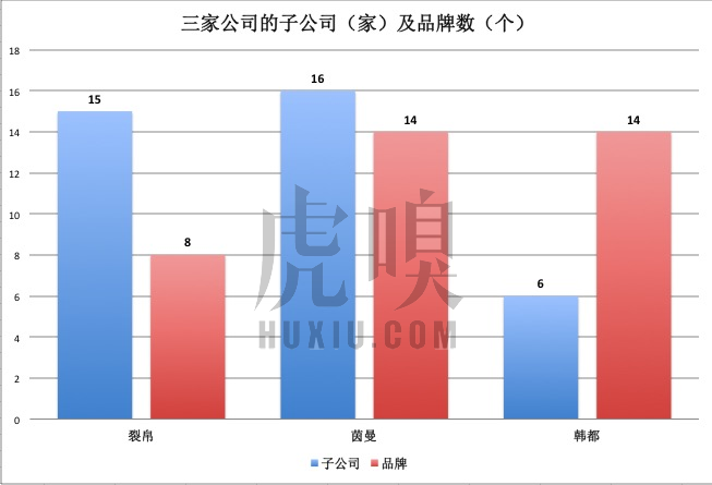 截止2015年12月31日,韩都有6家子公司、14个品牌,茵曼有16家子公司、14个品牌,裂帛则有15家子公司、8个在营品牌。