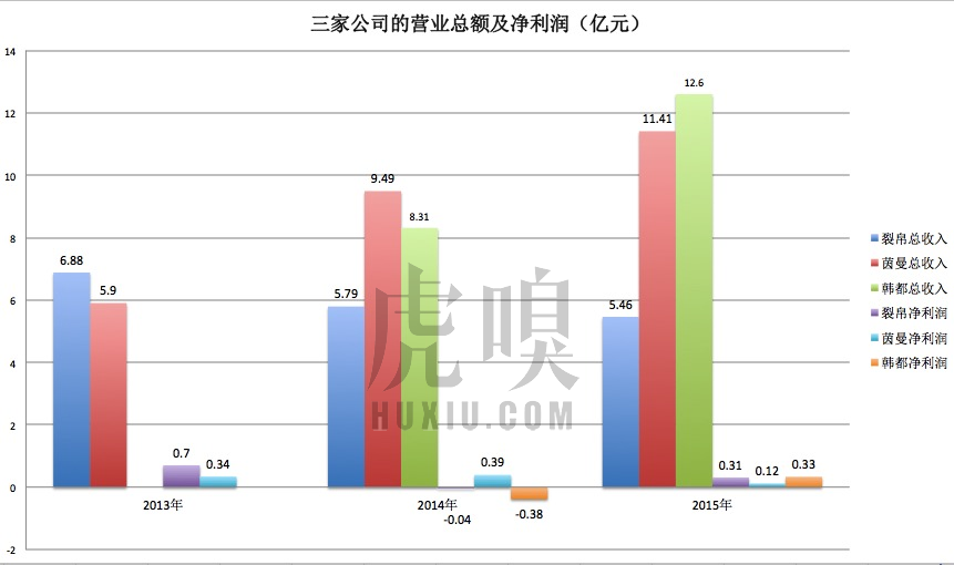 2013—2015年,裂帛年营收分别为6.88亿、5.79亿、5.46亿,对应净利润约7000万、-400万、3100万。