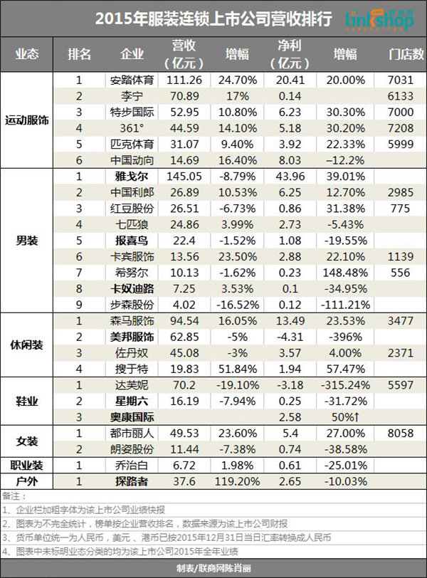 国内26家上市服饰公布的2015年财报显示,销售总额达1030.4亿元,其中有10家企业出现营收同比下滑;净利润总额达125.86亿元,其中11家企业出现净利同比下滑。而营收和净利润双双下滑的达6家。
