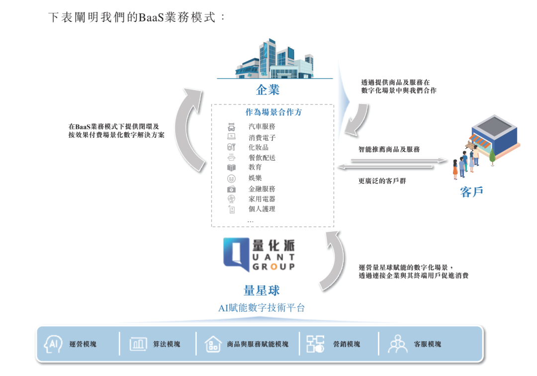 从招股书可以看到,量化派主要运营各类数字化场景(包括量赋能场景、商业数字化场景),据此提供精准营销、并赋能数字化交易。