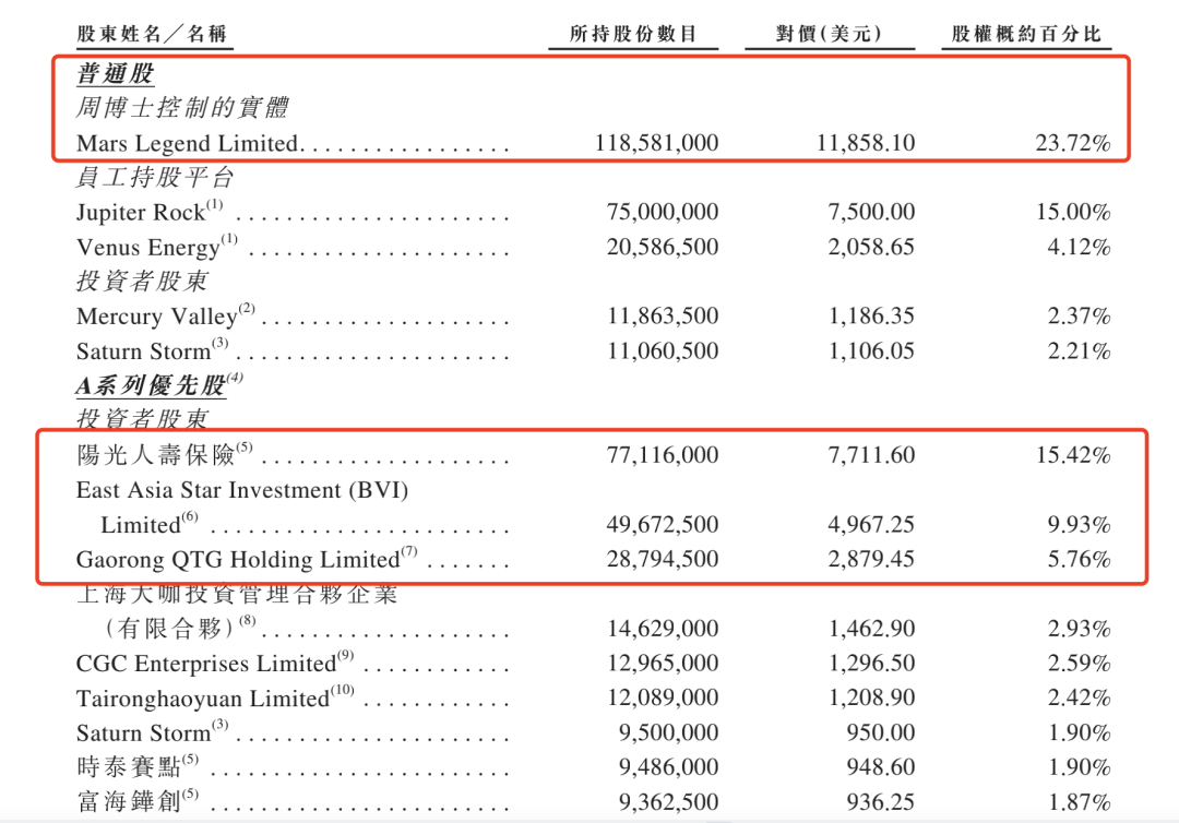 在股东中,也出现了高榕、复星和阳光保险的身影。其中阳光人寿保险持股15.42%;复星旗下的亚东星辰通过East Asia Star Investment (BVI)持股9.93%;高榕资本通过Gaorong QTG Holding持股5.76%;