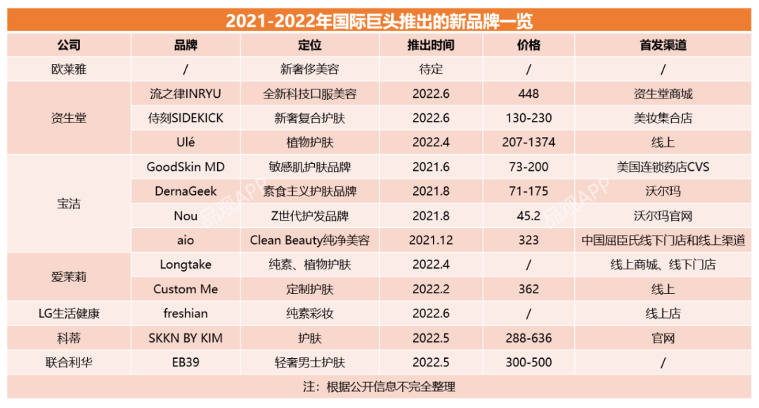 2021年6月以来,国际巨头推新品牌的动作逐渐密集,总体来看,这些新品牌呈现出以下特点: