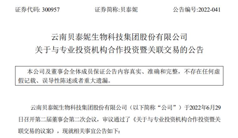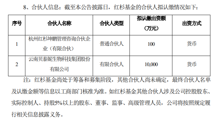 6月30日,云南贝泰妮生物科技集团股份有限公司(以下简称“贝泰妮”)发布公告,将以1亿元投资红杉基金。