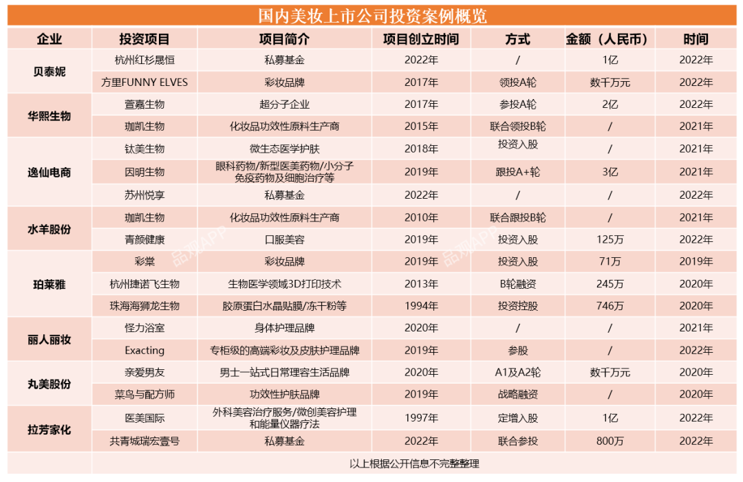 与此形成鲜明对比的是,越来越多美妆行业上市公司,纷纷出手,掀起了一股产业投资的热潮。