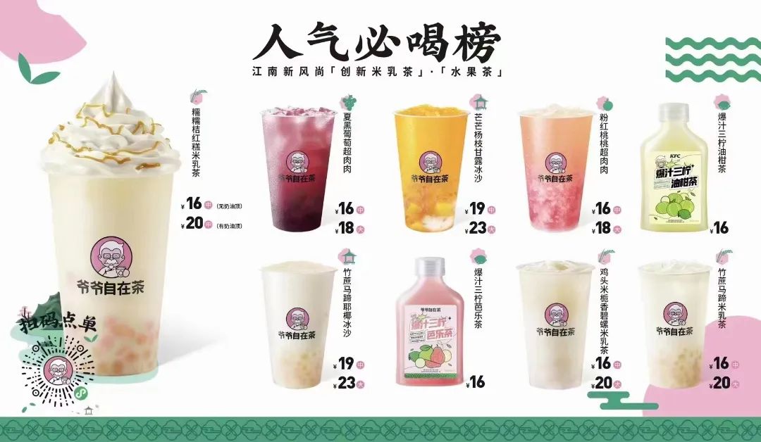 6月30日,肯德基独立茶饮品牌爷爷自在茶的全国首店正式开业,主要售卖茶饮、点心、雪糕等产品,售价6-19元。