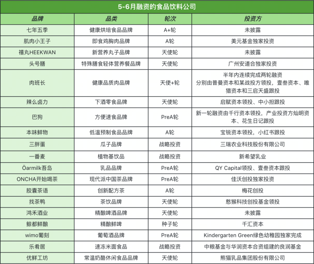 此外,2021年开始火爆的卤味、预制菜、茶饮品类仍是食品投资热门。低温预制食品品牌「本味鲜物」和辣么卤力分别获得A轮和天使轮融资,ONCHA开始喝茶、胶囊茶语和找茶鸭三个茶饮品牌获得融资。