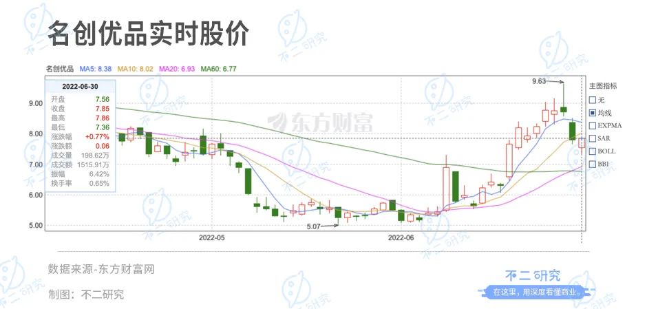 截止美东时间6月30日美股收盘,名创优品报收7.85美元/股;较IPO首日收盘价已下跌77.61%,市值已经跌去39亿美元。