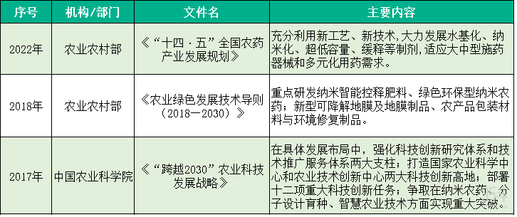 图:与纳米农药相关的部分政策文件,数据来源:据公开资料收集