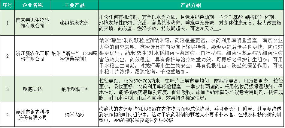 图:我国部分从事纳米农药方向的企业,数据来源:据公开资料收集