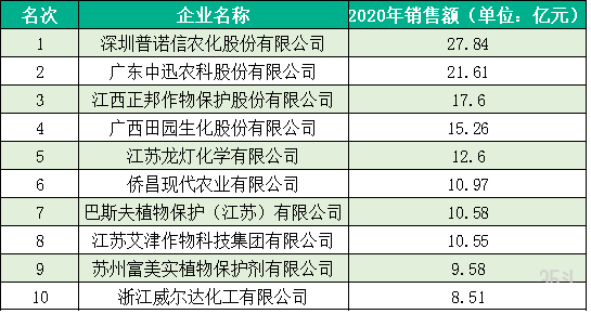 图:2021年全国农药行业制剂销售TOP10名单,数据来源:据公开资料收集