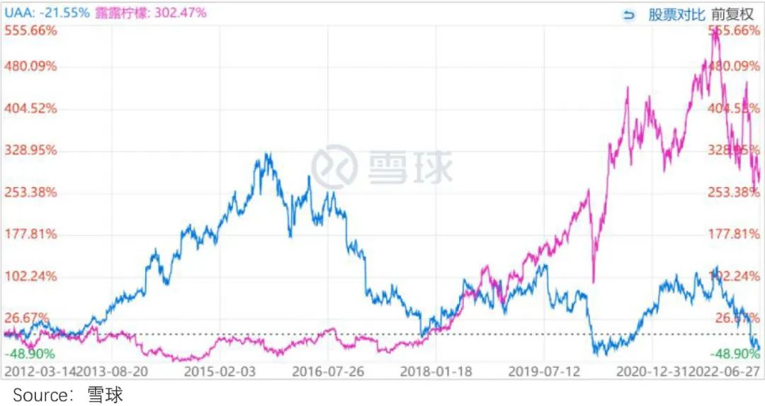 不过,高光时刻往往需要警惕“盛极而衰”,毕竟同样巅峰过的安德玛,因为错失风口与渠道危机,股价掉头直下,最终“泯然众人”。