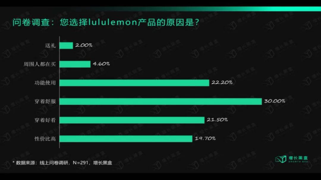 可以看到,一直到现在,Lululemon的消费者购买其产品的主要原因,仍是穿着舒适、功能便利。
