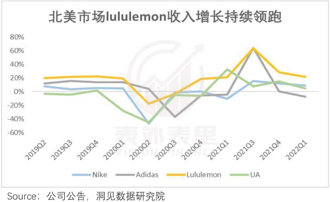 也就是说,先发优势叠加极强的用户心智占领,Lululemon承接住了风口,在美国实现高速增长。