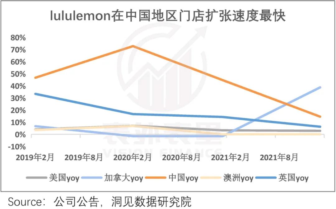 一方面,2019年以来,中国领跑Lululemon全球门店扩张速度,甚至2021年新开门店中,超过60%以上来自中国。而2021年电话会议披露,预计到2026财年,中国大陆门店数将增长三倍,达到220家。