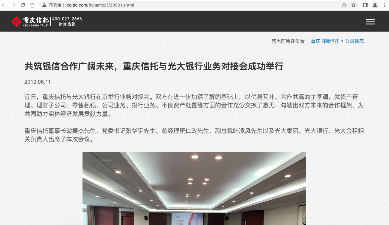 界面新闻记者关注到,张华宇离开光大银行后,曾在3家金融机构就职,分别为中国金融国际投资有限公司(00721.HK,下称中国金融国际)、同方国信投资控股有限公司(下称“同方国信”)和重庆国际信托股份有限公司(下称“重庆信托”)。其中,同方国信为重庆信托大股东,持股比例约66.99%。
