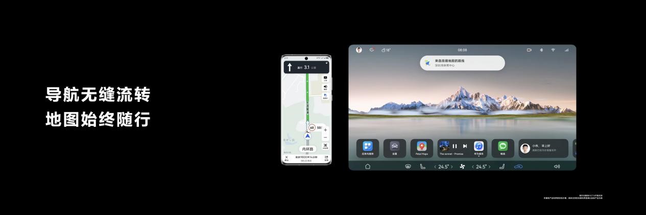 基于一个华为帐号,音乐可在手机与车机之间无缝流转,让好音乐不中断;华为视频也可同步记录观看进度,在其他设备上没看完的视频,上车后可以继续观看。