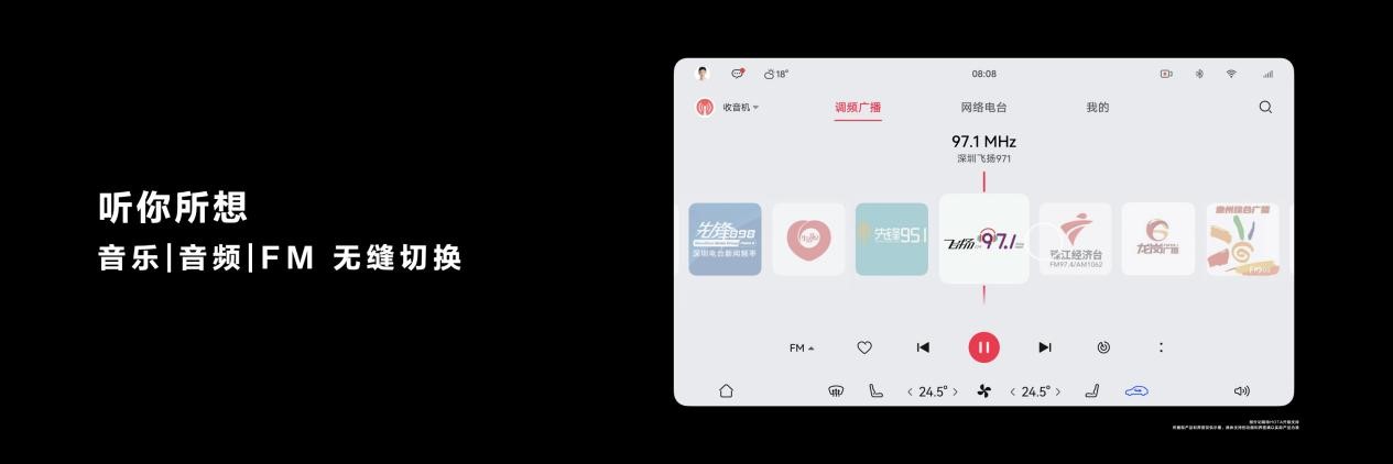 智能座舱的影音娱乐体验是用户颇为专注的一点。因此,华为音乐与环球音乐、太合音乐、街声StreetVoice等全球顶级唱片公司合作打造了千万级曲库,用户可聆听HQ、SQ高品质音乐专区内容,结合问界M7车内的19单元专业级音响,让悦耳体验伴随路途。此外,华为音乐还集成了华为收音机功能,可免流量收听调频FM/AM广播内容,并拥有上千个全国网络电台资源。
