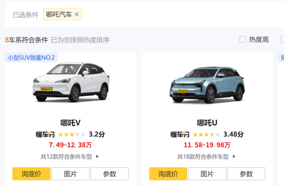 图:哪吒汽车价格相比威马汽车便宜些 来源:懂车帝
