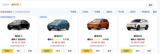 图:威马汽车参考价格 来源:懂车帝
