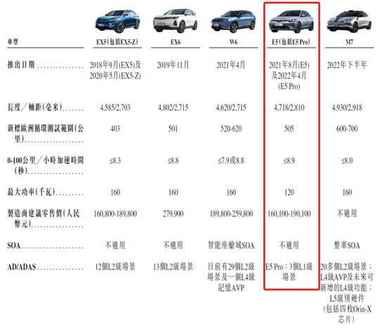 图:威马现有的车型 来源:招股书